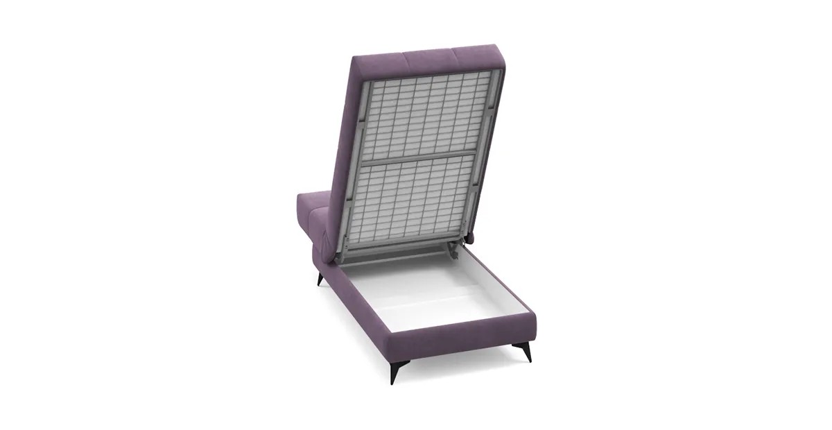 Несмотря на компактные размеры кушетки Виго, под ее основанием прячется полноценный бельевой ящик. Металлическая платформа дивана надёжна и очень долговечна благодаря легирующим добавкам и дополнительным рёбрам жёсткости в местах максимальной нагрузки. Высокопрочная сварная конструкция под мягким настилом позволяет достигнуть оптимального соотношения упругости и комфорта.