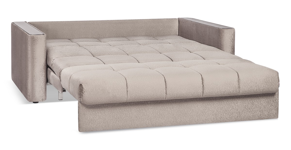Особое внимание следует уделить инновационной системе анти-скрип, которая обеспечивает высокую плавность хода механизма раскладывания и не создает лишнего шума при использовании, а также делает диван еще более надежным.