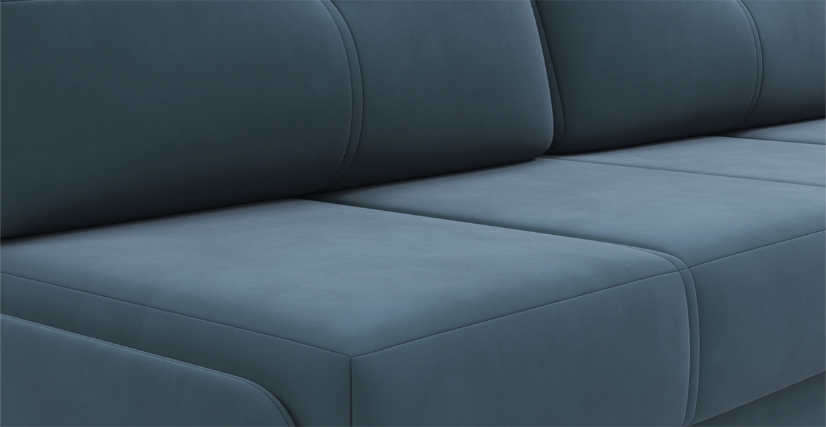 Особое внимание стоит уделить отсутствию подлокотников. Это не просто дизайнерское решение, а продуманный шаг к экономии пространства. Диван Данте идеально впишется даже в небольшие комнаты, не загромождая их и визуально расширяя пространство.