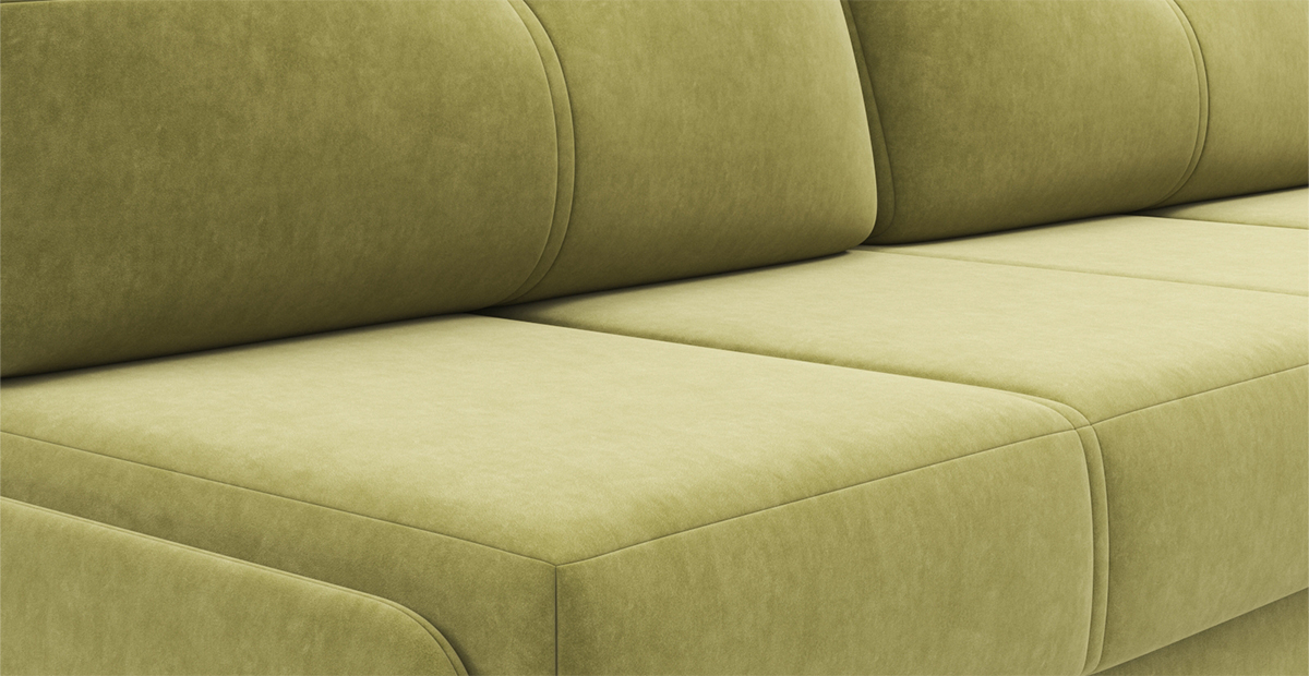 Особое внимание стоит уделить отсутствию подлокотников. Это не просто дизайнерское решение, а продуманный шаг к экономии пространства. Диван Данте идеально впишется даже в небольшие комнаты, не загромождая их и визуально расширяя пространство.