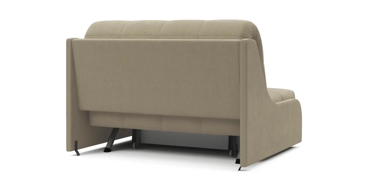 Идеальное решение для малогабаритных квартир – диван Дели с механизмом трансформации Аккордеон. В этой модели нет ничего лишнего. Фальшпанели вместо подлокотников экономят место, а высокая задняя спинка дивана в разложенном виде служит изголовьем кровати. Ровное и просторное спальное место без стыков оснащено независимым пружинным блоком, что сделает сон максимально комфортным.