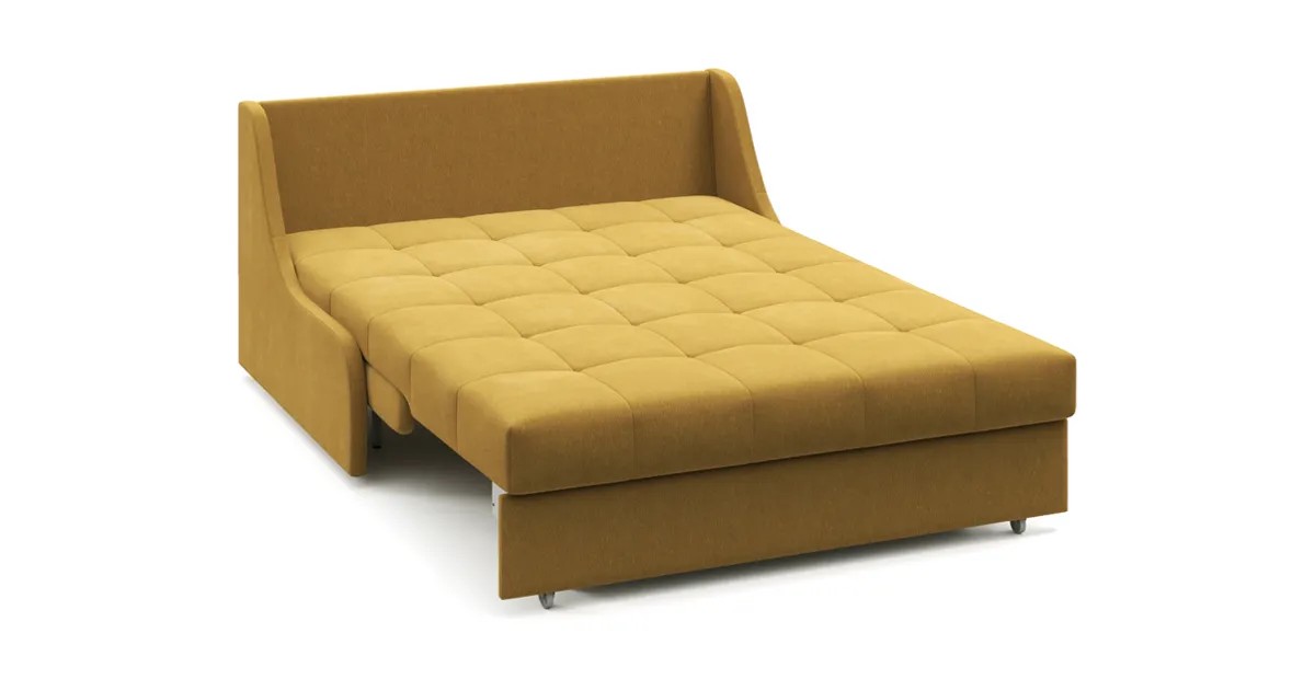 Идеальное решение для малогабаритных квартир – диван Дели с механизмом трансформации Аккордеон. В этой модели нет ничего лишнего. Фальшпанели вместо подлокотников экономят место, а высокая задняя спинка дивана в разложенном виде служит изголовьем кровати. Ровное и просторное спальное место без стыков оснащено независимым пружинным блоком, что сделает сон максимально комфортным.