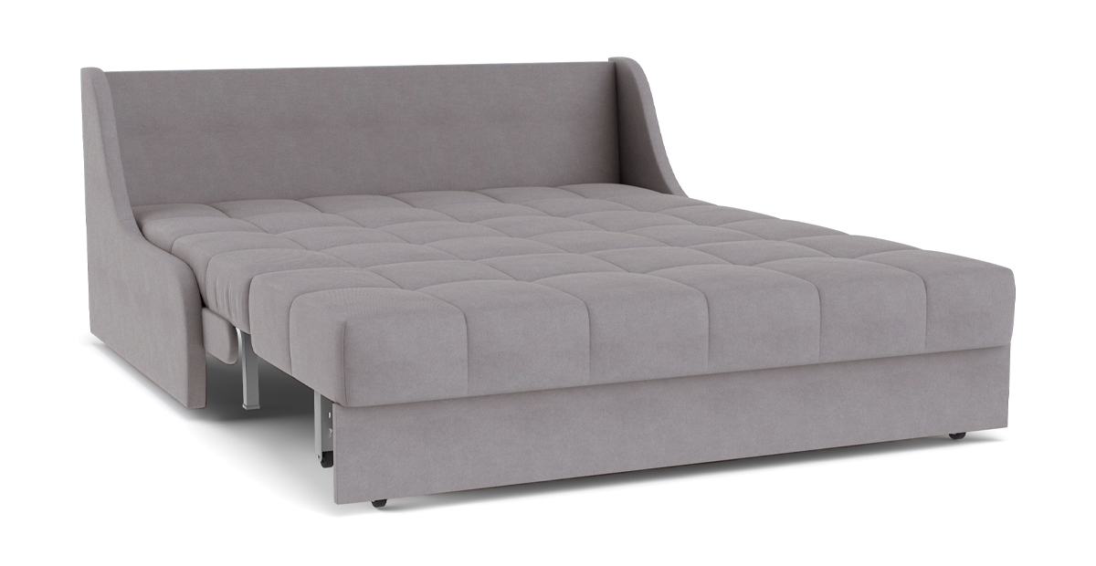 Идеальное решение для малогабаритных квартир – диван Дели с механизмом трансформации Аккордеон. В этой модели нет ничего лишнего. Заменяющие подлокотники фальшпанели экономят место, а высокая задняя спинка дивана в разложенном виде становится изголовьем кровати. Ровное и просторное спальное место без стыков обеспечивает комфортный сон.