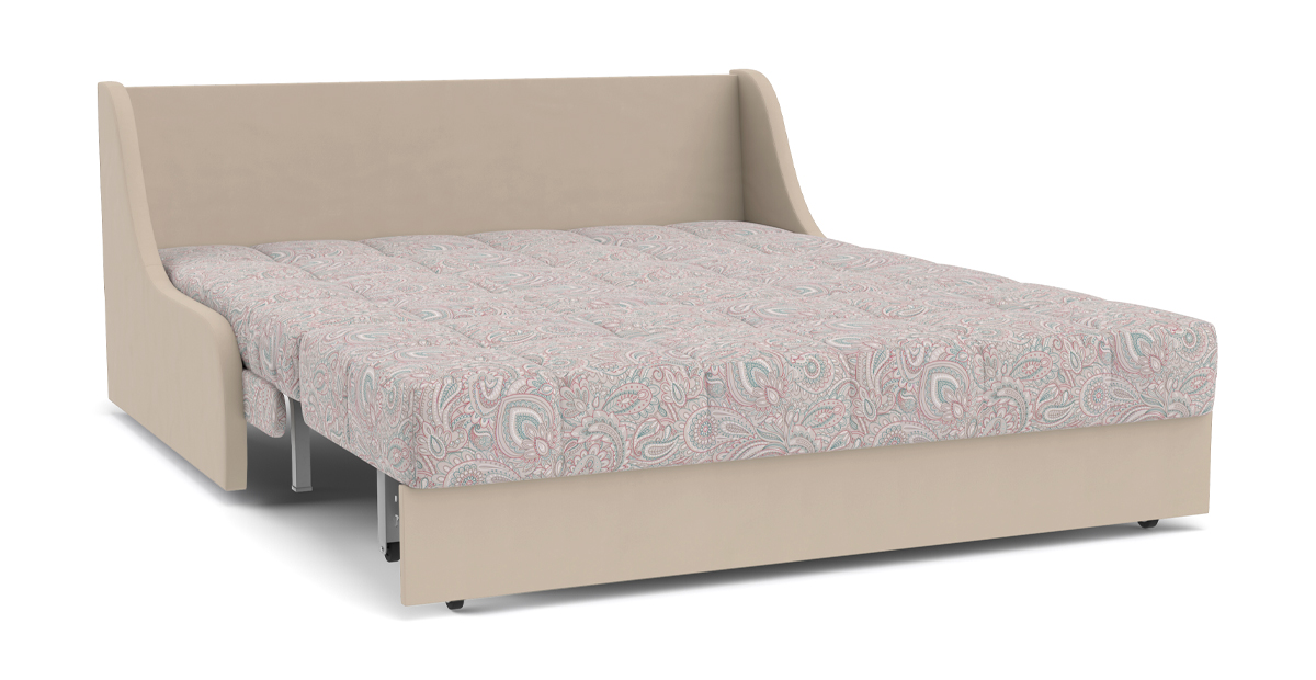 Идеальное решение для малогабаритных квартир – диван Дели с механизмом трансформации Аккордеон. В этой модели нет ничего лишнего. Заменяющие подлокотники фальшпанели экономят место, а высокая задняя спинка дивана в разложенном виде становится изголовьем кровати. Ровное и просторное спальное место без стыков обеспечивает комфортный сон.