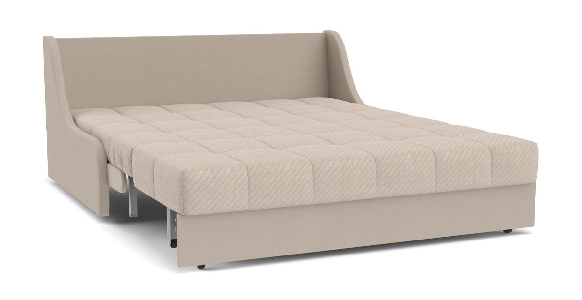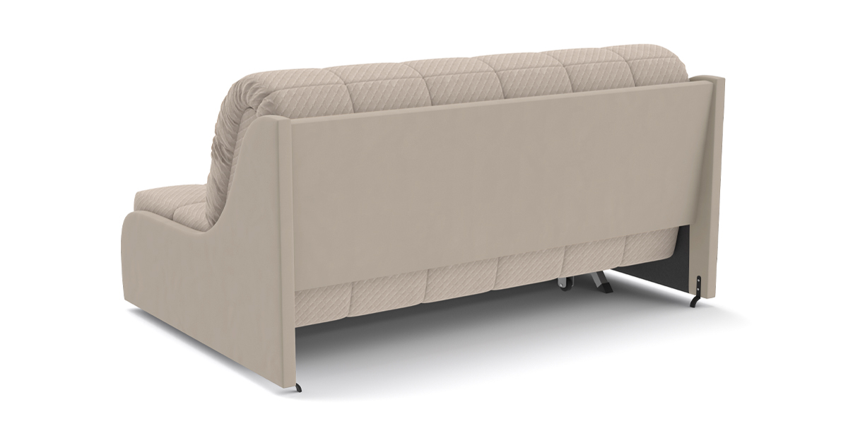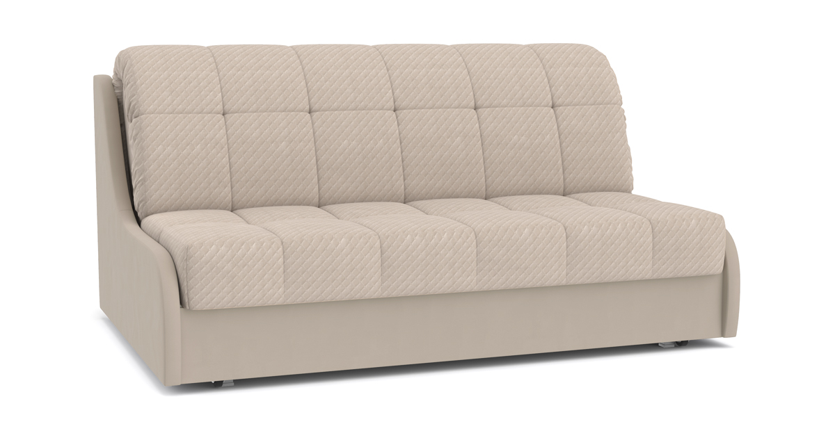 Идеальное решение для малогабаритных квартир – диван Дели с механизмом трансформации Аккордеон. В этой модели нет ничего лишнего. Заменяющие подлокотники фальшпанели экономят место, а высокая задняя спинка дивана в разложенном виде становится изголовьем кровати. Ровное и просторное спальное место без стыков обеспечивает комфортный сон.