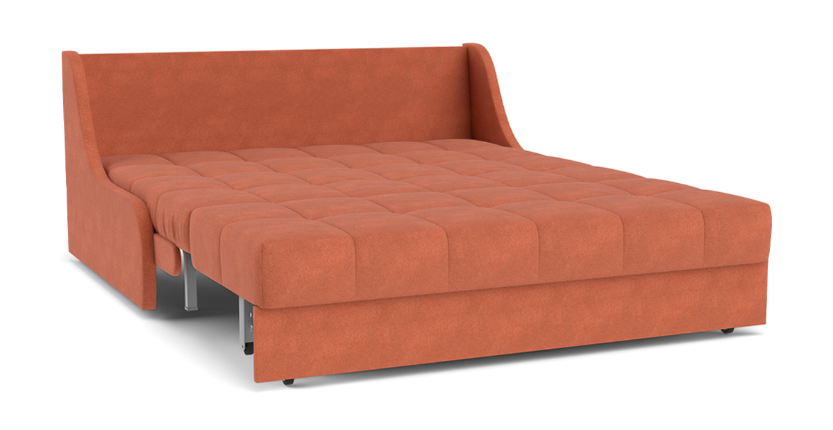 Идеальное решение для малогабаритных квартир – диван Дели с механизмом трансформации Аккордеон. В этой модели нет ничего лишнего, заменяющие подлокотники фальшпанели экономят место, а высокая задняя спинка дивана в разложенном виде становится изголовьем кровати. Ровное и просторное спальное место без стыков оснащено независимым пружинным блоком, что сделает сон максимально комфортным.