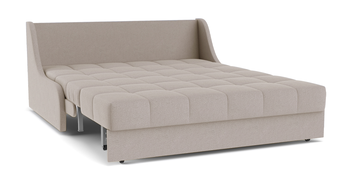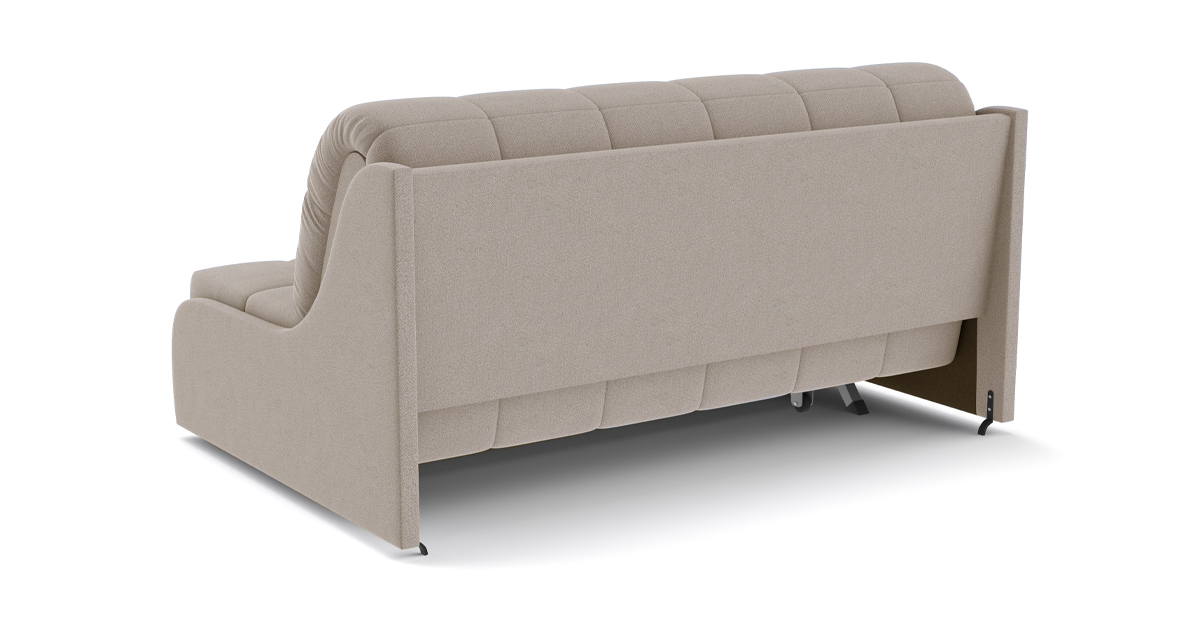 Идеальное решение для малогабаритных квартир – диван Дели с механизмом трансформации Аккордеон. В этой модели нет ничего лишнего. Заменяющие подлокотники фальшпанели экономят место, а высокая задняя спинка дивана в разложенном виде становится изголовьем кровати. Ровное и просторное спальное место без стыков обеспечивает комфортный сон.