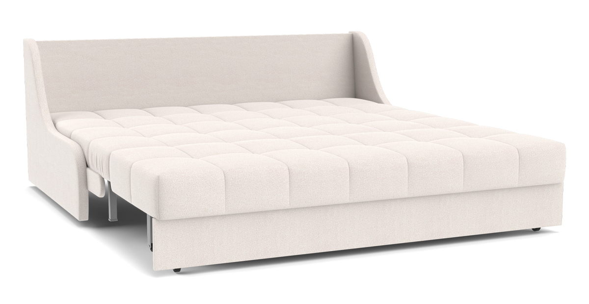 Идеальное решение для малогабаритных квартир – диван Дели с механизмом трансформации Аккордеон. В этой модели нет ничего лишнего. Заменяющие подлокотники фальшпанели экономят место, а высокая задняя спинка дивана в разложенном виде становится изголовьем кровати. Ровное и просторное спальное место без стыков обеспечивает комфортный сон.