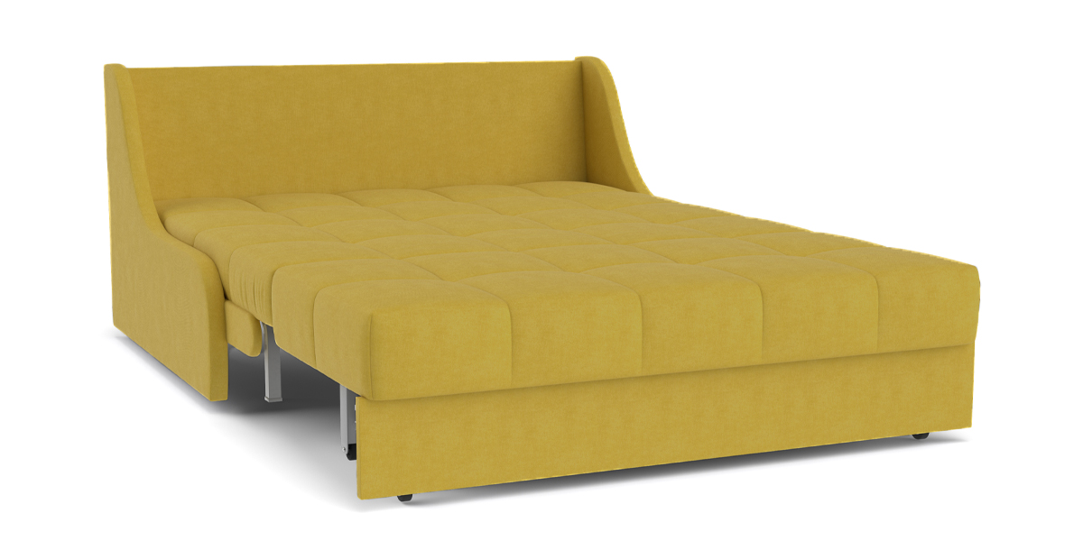 Идеальное решение для малогабаритных квартир – диван Дели с механизмом трансформации Аккордеон. В этой модели нет ничего лишнего. Фальшпанели вместо подлокотников экономят место, а высокая задняя спинка дивана в разложенном виде служит изголовьем кровати. Ровное и просторное спальное место без стыков оснащено независимым пружинным блоком, что сделает сон максимально комфортным.