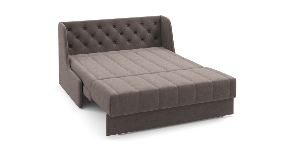 Основание спального места укомплектовано березовыми латами, что в сочетании с матрасом из высокоэластичной пены обеспечивает ортопедический эффект и комфортный сон. Механизм трансформации Аккордеон обеспечивает ровное спальное место без стыков.