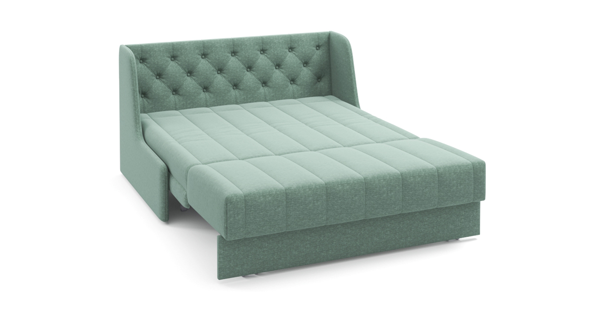 Эта модель дивана предназначена для тех, кто хочет спать на интерьерной кровати, но одновременно стремится к рациональному использованию пространства. Высокая задняя спинка дивана Доминго, обтянутая мягким чехлом со стильной каретной стяжкой, в разложенном виде выполняет роль изголовья. Благодаря этому он выглядит как интерьерная кровать. Основание спального места укомплектовано березовыми латами, что в сочетании с матрасом из высокоэластичной пены обеспечивает ортопедический эффект и комфортный сон. Механизм трансформации Аккордеон обеспечивает ровное спальное место без стыков. В сложенном виде диван Доминго компактный и позволяет рационально использовать место за счет узких боковин, заменяющих подлокотники.