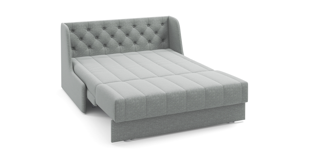 Эта модель дивана предназначена для тех, кто хочет спать на интерьерной кровати, но одновременно стремится к рациональному использованию пространства. Высокая задняя спинка дивана Доминго, обтянутая мягким чехлом со стильной каретной стяжкой, в разложенном виде выполняет роль изголовья. Благодаря этому он выглядит как интерьерная кровать. Основание спального места укомплектовано березовыми латами, что в сочетании с матрасом из высокоэластичной пены обеспечивает ортопедический эффект и комфортный сон. Механизм трансформации Аккордеон обеспечивает ровное спальное место без стыков. В сложенном виде диван Доминго компактный и позволяет рационально использовать место за счет узких боковин, заменяющих подлокотники.