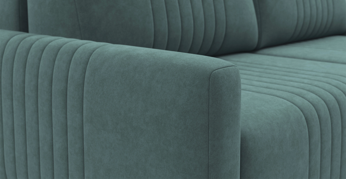 Спинка модели выполнена в основной обивочной ткани, что позволит вписать его в пространство-студию, легко разделив интерьер на функциональные зоны.