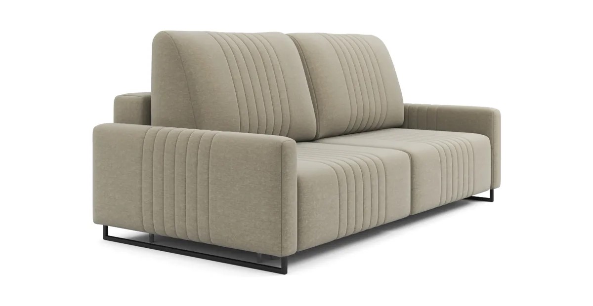Эргономичный дизайн и мягкие приспинные подушки обеспечивают максимальный комфорт при использовании. Диван оснащен механизмом трансформации Тик-так, что позволяет легко преобразовать его в удобное спальное место. К модели также можно отдельно приобрести бельевой ящик для хранения.