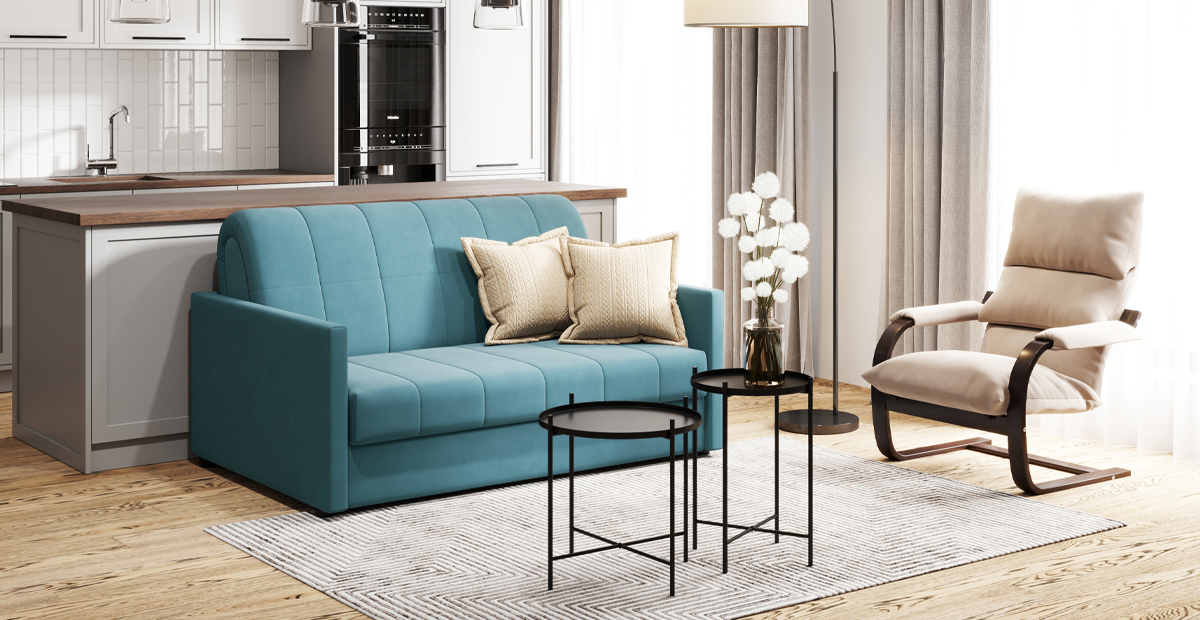 Диван с узкими подлокотниками — удобное решение для малогабаритных помещений. Модель Хилтон сочетает в себе компактность, проверенный временем дизайн и один из самых популярных механизмов трансформации — аккордеон. Он легко раскладывается и обеспечивает ровное и просторное спальное место без стыков.