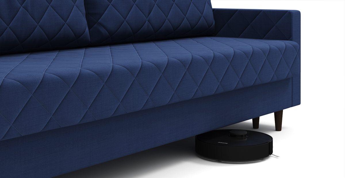 Потрясающий диван. Рекомендую к покупке. Ткань приятная на ощупь. Пружины упругие. Смотрится миниатюрно. Долго выбирали и остановились на данном варианте. Робот под ним проезжает, но из-за высоких ножек уменьшенная глубина ящика. На подушках есть молния, можно будет стирать. Сидеть и лежать одно удовольствие.