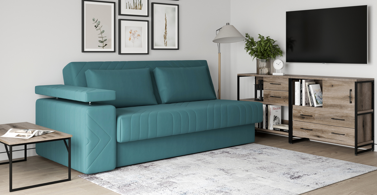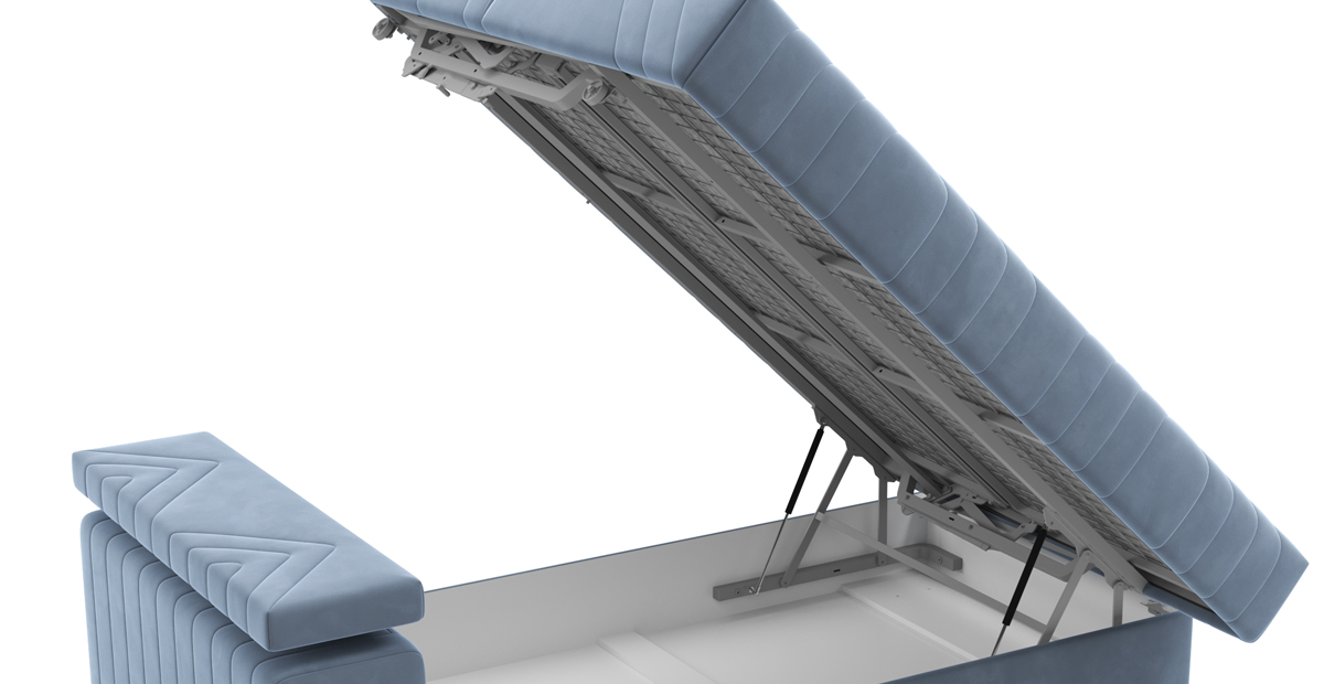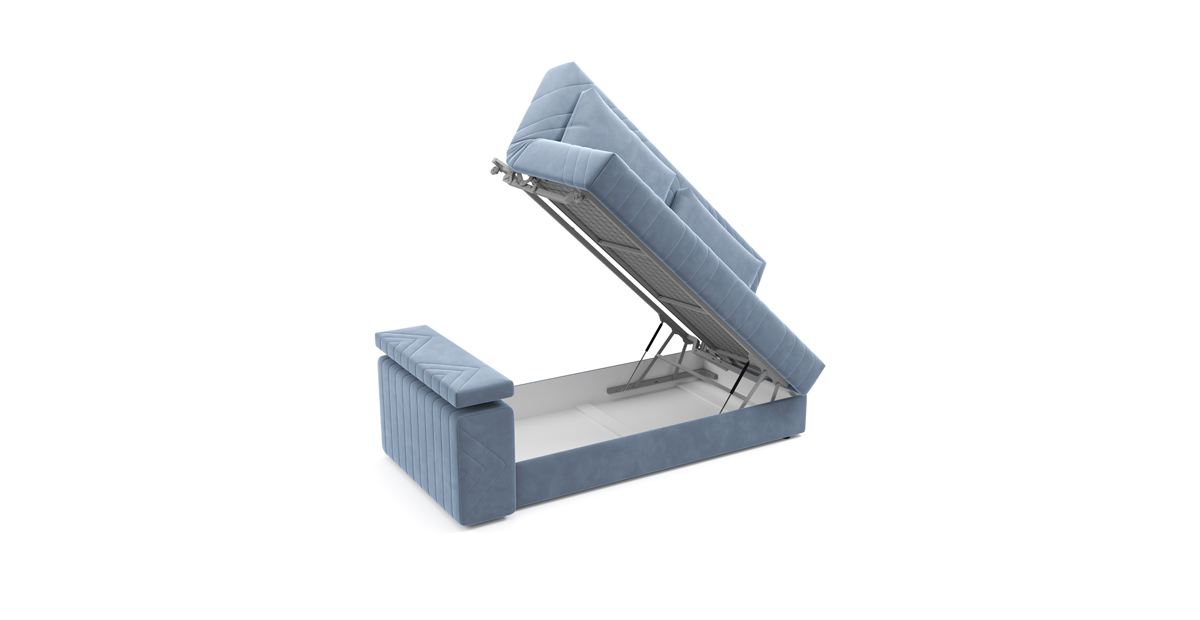 Уникальный механизм трансформации Матрикс позволяет легко раскладывать диван в двуспальную кровать одной рукой. И в любом положении его можно поднять на газлифтах для доступа к вместительному ящику.