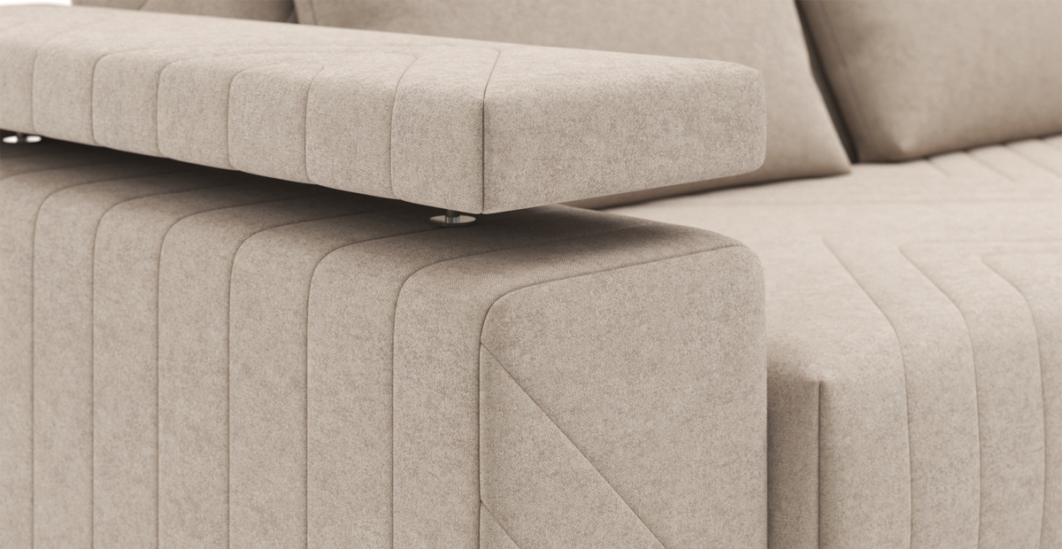 Кингстон NEXT – уютный и лаконичный современный диван. Ассиметричный дизайн со стильной стёжкой и необычным подлокотником станет практичным украшением интерьера. Небанальная геометричная дизайнерская стёжка была разработана специально для этой модели, она подчеркивает необычные формы дивана, подчёркивая его динамичный и современный образ.
