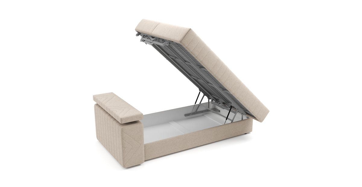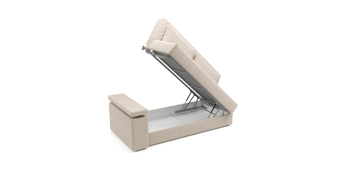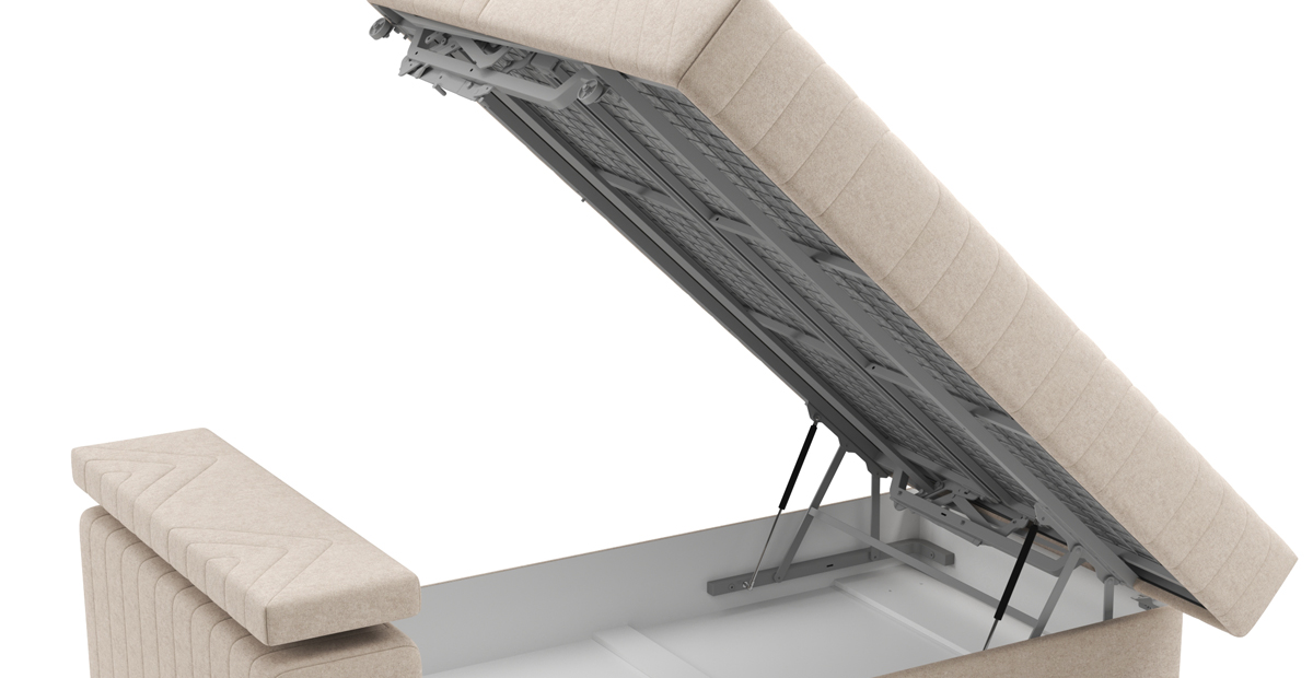 Уникальный механизм трансформации Матрикс позволяет легко раскладывать диван в двуспальную кровать одной рукой. И в любом положении его можно поднять на газлифтах для доступа к вместительному ящику.