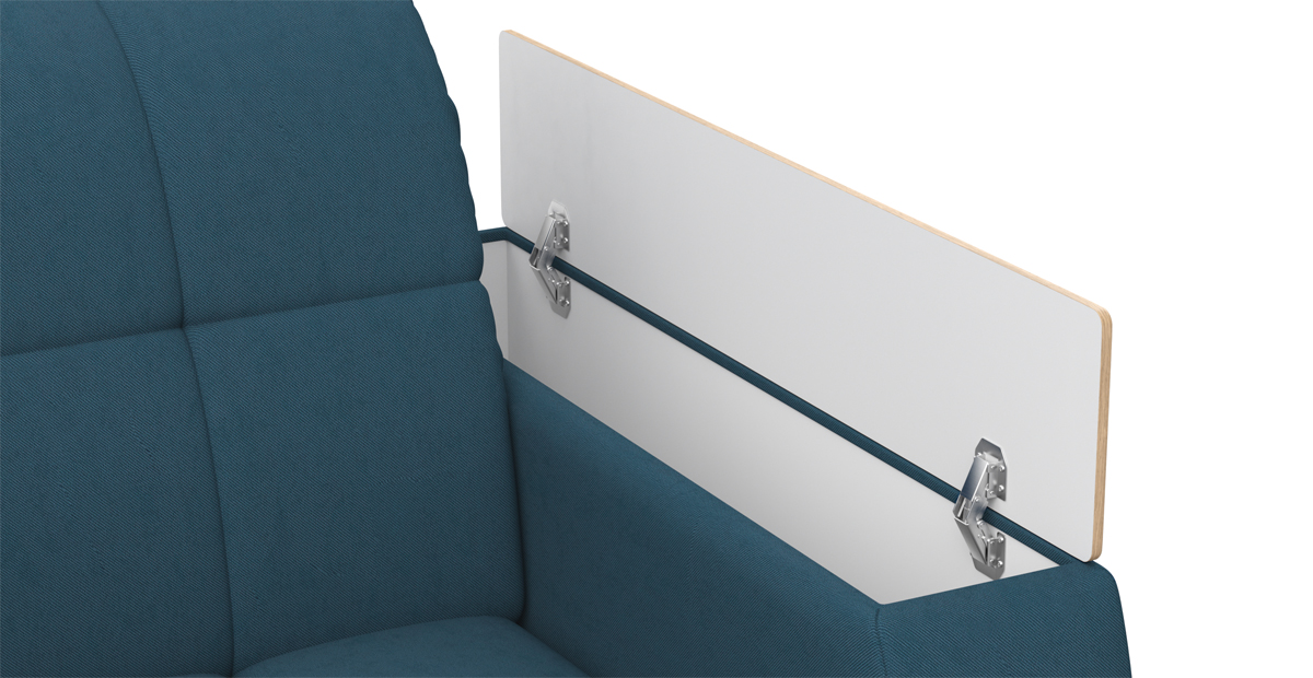 Особенностью диванов с механизмом Аккордеон является просторное и ровное спальное место, несмотря на компактные размеры дивана в собранном положении. А также возможность встроить вместительный бельевой ящик. В данном механизме исключается возникновение скрипа благодаря сиденью дивана, которое выполнено на металлической сетке. Каждая из трех секций спального места имеет по 4 твердые точки опоры, которые исключают вероятность скрипа. Уникальная конструкция позволяет фиксировать сиденье почти в вертикальном положении, что обеспечивает самый комфортный доступ к бельевому ящику.