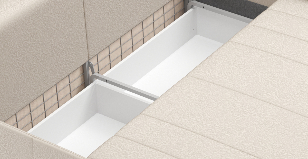 В дополнение к остальным положительным качествам механизма Еврокнижка платформа каркаса в исполнении NEXT выполнена полностью из металла и является базой для построения дивана. Основание каркаса оборудовано байонетами для надежного и быстрого монтажа комплектующих дивана в готовое изделие при окончательной сборке у покупателя.