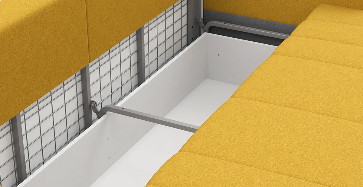 В дополнение к остальным положительным качествам механизма Еврокнижка платформа каркаса в исполнении NEXT выполнена полностью из металла и является базой для построения дивана. Основание каркаса оборудовано байонетами для надежного и быстрого монтажа комплектующих дивана в готовое изделие при окончательной сборке у покупателя.