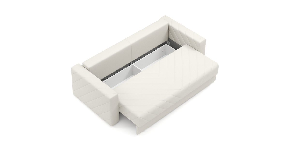 Вместительный бельевой ящик, расположенный под сидением, станет незаменимым помощником в организации пространства. Здесь вы сможете удобно хранить постельное белье, одеяла и другие необходимые вещи, поддерживая порядок в вашей гостиной.