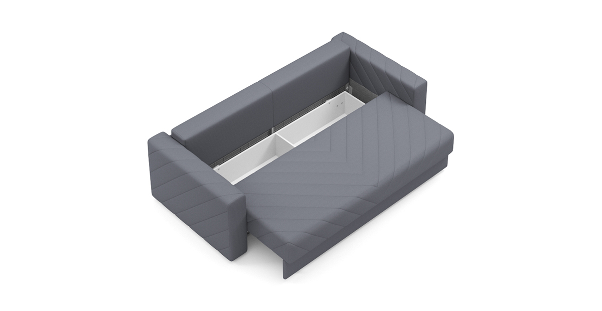 Вместительный бельевой ящик, расположенный под сидением, станет незаменимым помощником в организации пространства. Здесь вы сможете удобно хранить постельное белье, одеяла и другие необходимые вещи, поддерживая порядок в вашей гостиной.