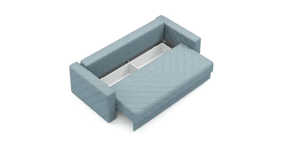 Вместительный бельевой ящик, расположенный под сидением, станет незаменимым помощником в организации пространства. Здесь вы сможете удобно хранить постельное белье, одеяла и другие необходимые вещи, поддерживая порядок в вашей гостиной.