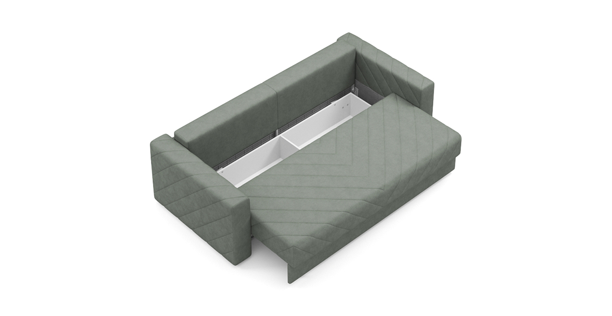 Вместительный бельевой ящик, расположенный под сидением, станет незаменимым помощником в организации пространства. Здесь вы сможете удобно хранить постельное белье, одеяла и другие необходимые вещи, поддерживая порядок в вашей гостиной.