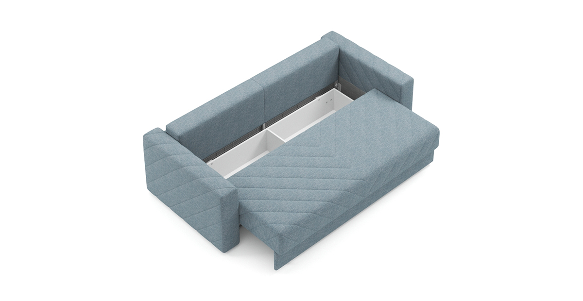 Вместительный бельевой ящик, расположенный под сидением, станет незаменимым помощником в организации пространства. Здесь вы сможете удобно хранить постельное белье, одеяла и другие необходимые вещи, поддерживая порядок в вашей гостиной.