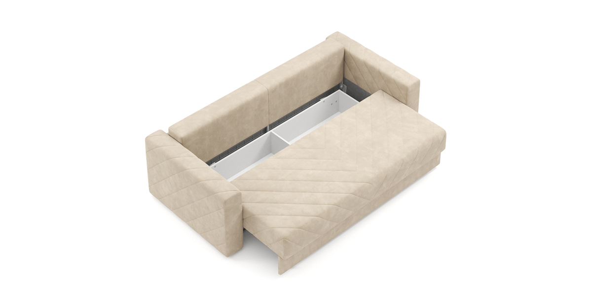 Вместительный бельевой ящик, расположенный под сидением, станет незаменимым помощником в организации пространства. Здесь вы сможете удобно хранить постельное белье, одеяла и другие необходимые вещи, поддерживая порядок в вашей гостиной.