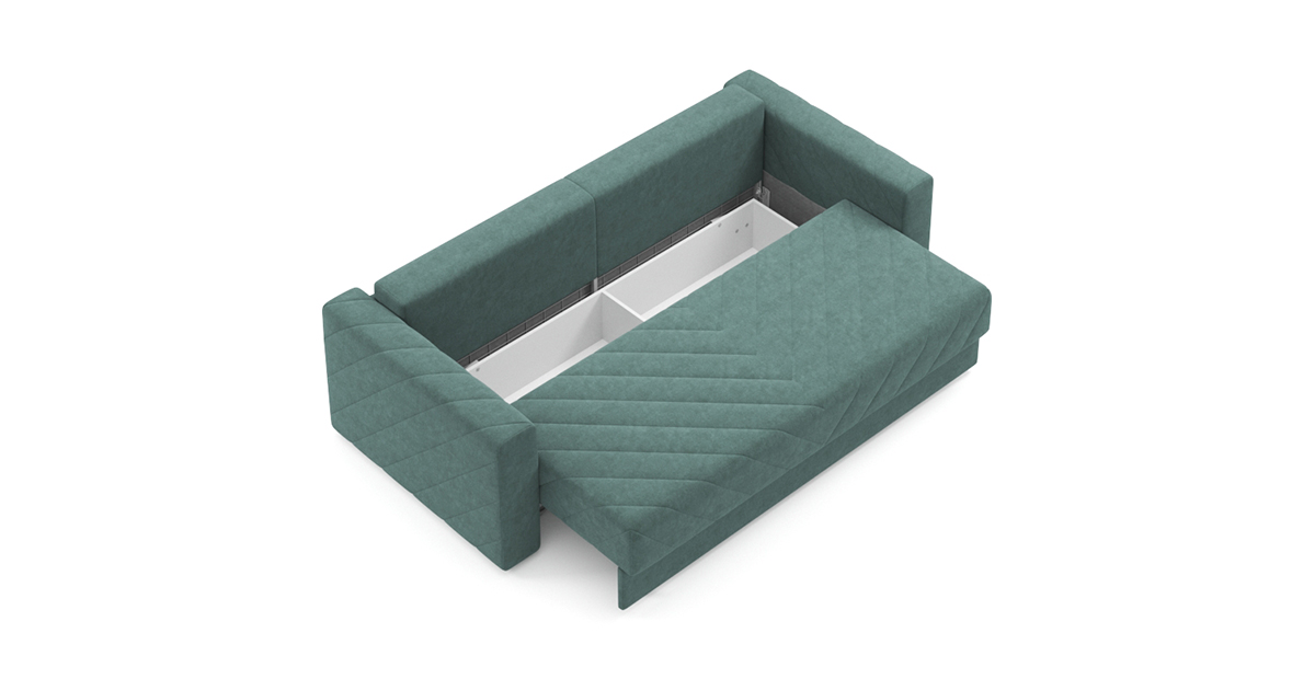 Вместительный бельевой ящик, расположенный под сидением, станет незаменимым помощником в организации пространства. Здесь вы сможете удобно хранить постельное белье, одеяла и другие необходимые вещи, поддерживая порядок в вашей гостиной.