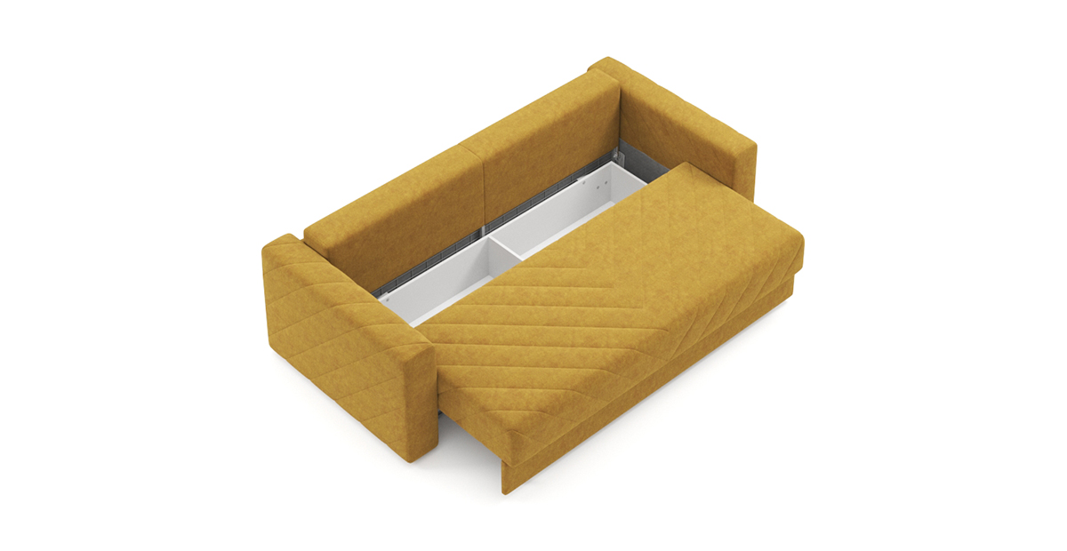 Вместительный бельевой ящик, расположенный под сидением, станет незаменимым помощником в организации пространства. Здесь вы сможете удобно хранить постельное белье, одеяла и другие необходимые вещи, поддерживая порядок в вашей гостиной.