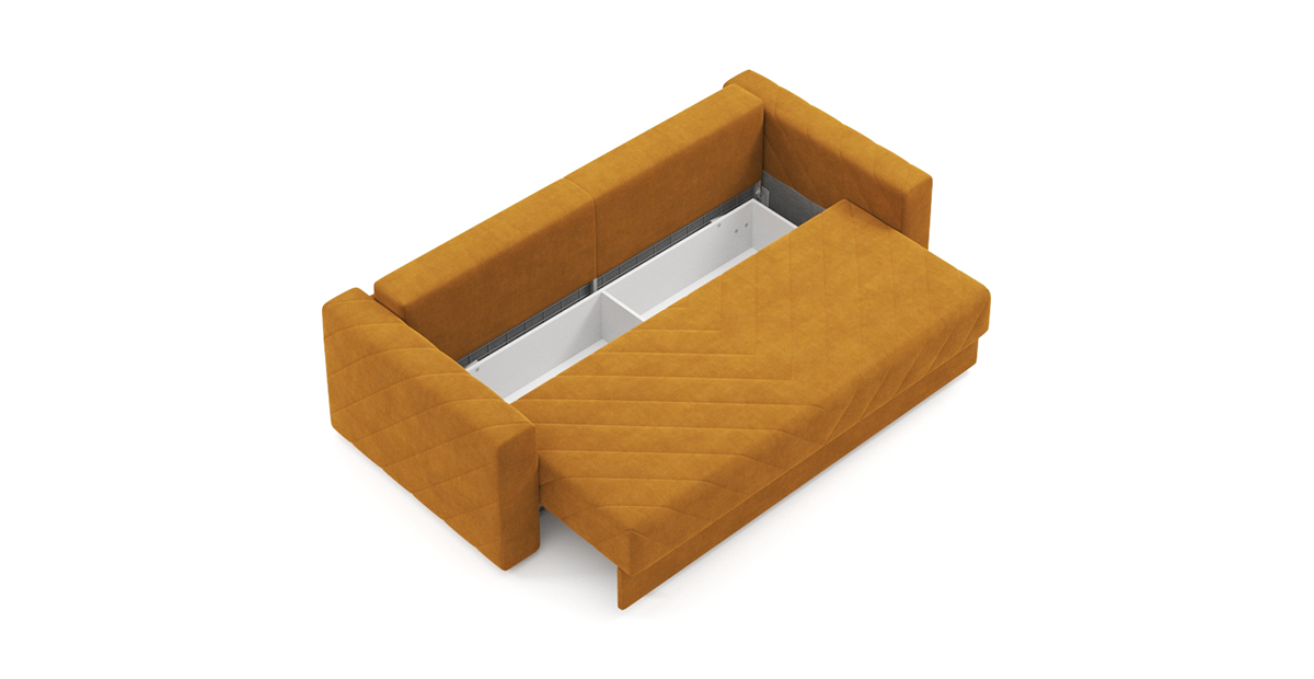 Вместительный бельевой ящик, расположенный под сидением, станет незаменимым помощником в организации пространства. Здесь вы сможете удобно хранить постельное белье, одеяла и другие необходимые вещи, поддерживая порядок в вашей гостиной.