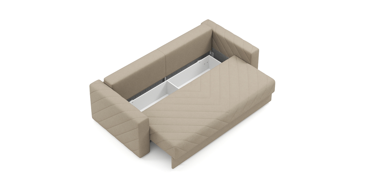 Вместительный бельевой ящик, расположенный под сидением, станет незаменимым помощником в организации пространства. Здесь вы сможете удобно хранить постельное белье, одеяла и другие необходимые вещи, поддерживая порядок в вашей гостиной.