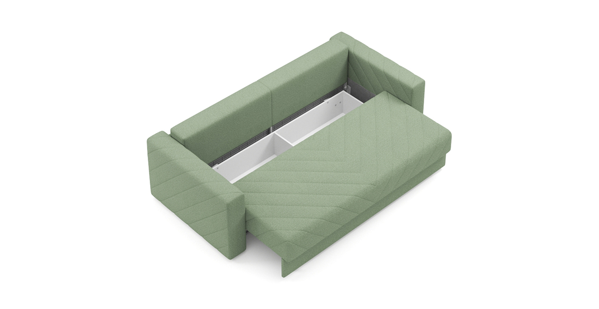 Вместительный бельевой ящик, расположенный под сидением, станет незаменимым помощником в организации пространства. Здесь вы сможете удобно хранить постельное белье, одеяла и другие необходимые вещи, поддерживая порядок в вашей гостиной.