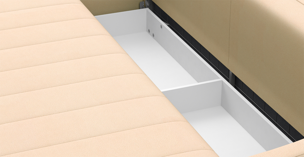 Важный практичный элемент – вместительный и прочный ящик для белья с дополнительными опорами.