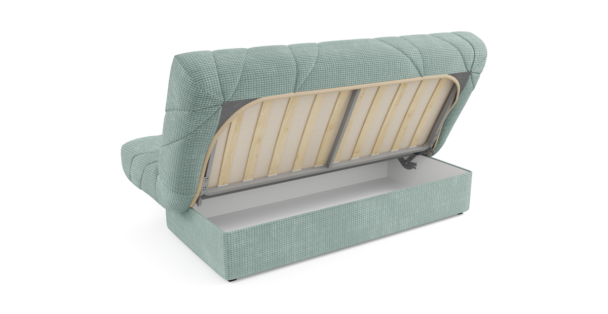 Представленный диван с механизмом Клик-кляк, являющимся усовершенствованной версией механизма Книжка, позволяет легким движением превратить компактный диван в просторное спальное место без зазоров посередине. Особенностью такого механизма является возможность трансформации дивана в три положения – для сидения, отдыха полулежа и сна.