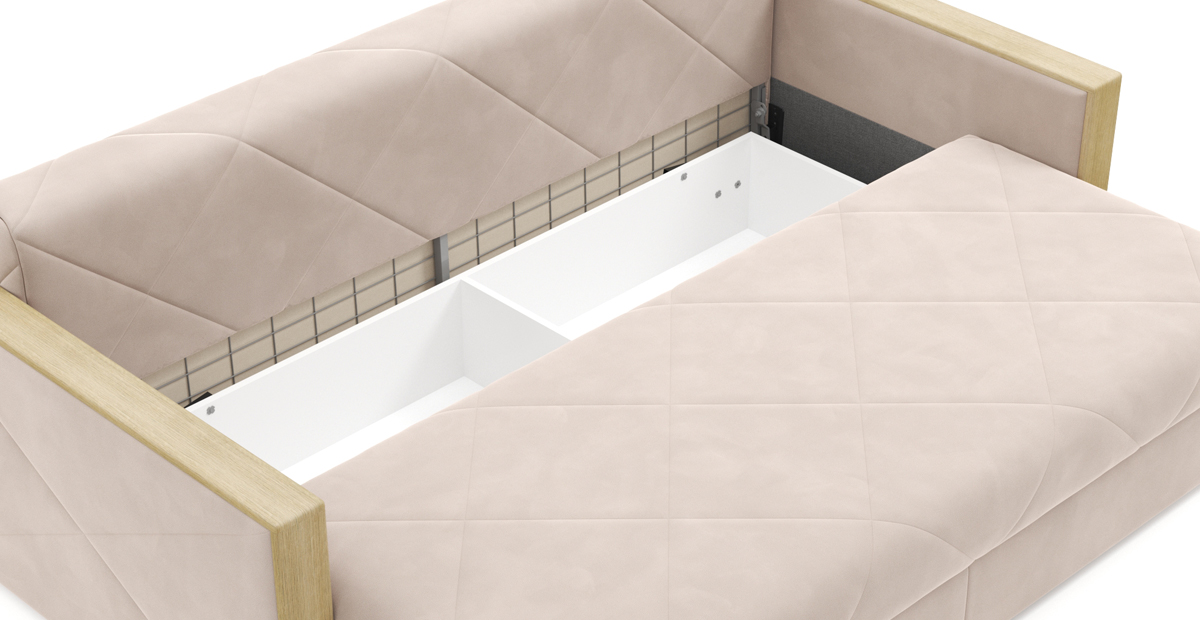 Стильный диван Мюнхен на металлической платформе NEXT — сочетание элегантности и функциональности. Благодаря современным технологиям, диван можно разложить одной рукой, а механизм трансформации «тик-так» не портит покрытие пола. Стежка на сидении и спинке не позволит образовываться складкам на обивке, а чехлы на подушках можно снять, чтобы постирать. Во вместительном бельевом ящике под сидением можно хранить спальные принадлежности. Кроме этого, любители пить на диване чай или кофе по достоинству оценят широкие подлокотники с деревянными накладками.
