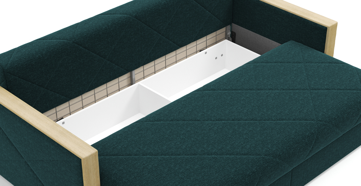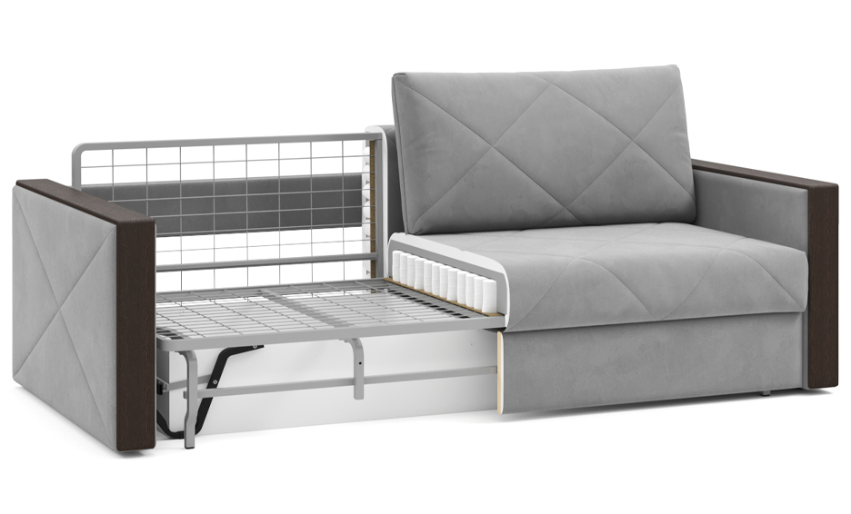 Стильный диван Мюнхен на металлической платформе NEXT — сочетание элегантности и функциональности. Благодаря современным технологиям, диван можно разложить одной рукой, а механизм трансформации «тик-так» не портит покрытие пола. Стежка на сидении и спинке не позволит образовываться складкам на обивке, а чехлы на подушках можно снять, чтобы постирать. Во вместительном бельевом ящике под сидением можно хранить спальные принадлежности. Кроме этого, любители пить на диване чай или кофе по достоинству оценят широкие подлокотники с деревянными накладками.