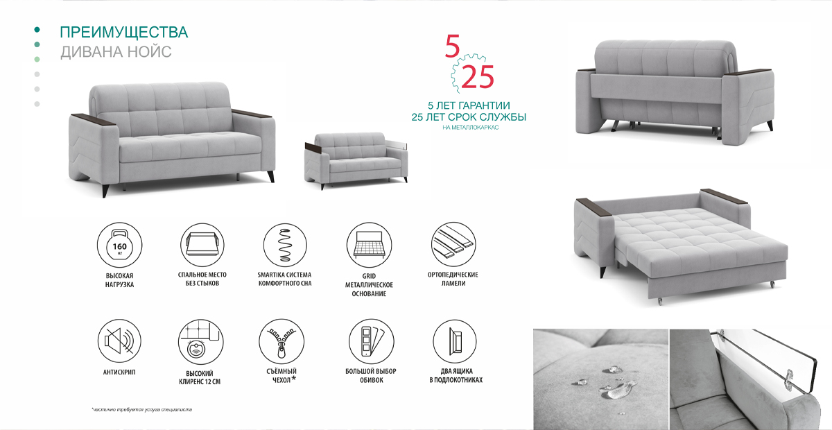 Для создания дивана Нойс использованы только высококачественные материалы, обеспечивающие долговечность и надежность изделия.