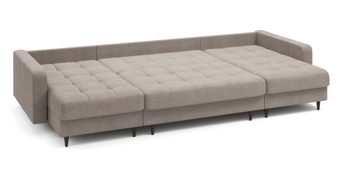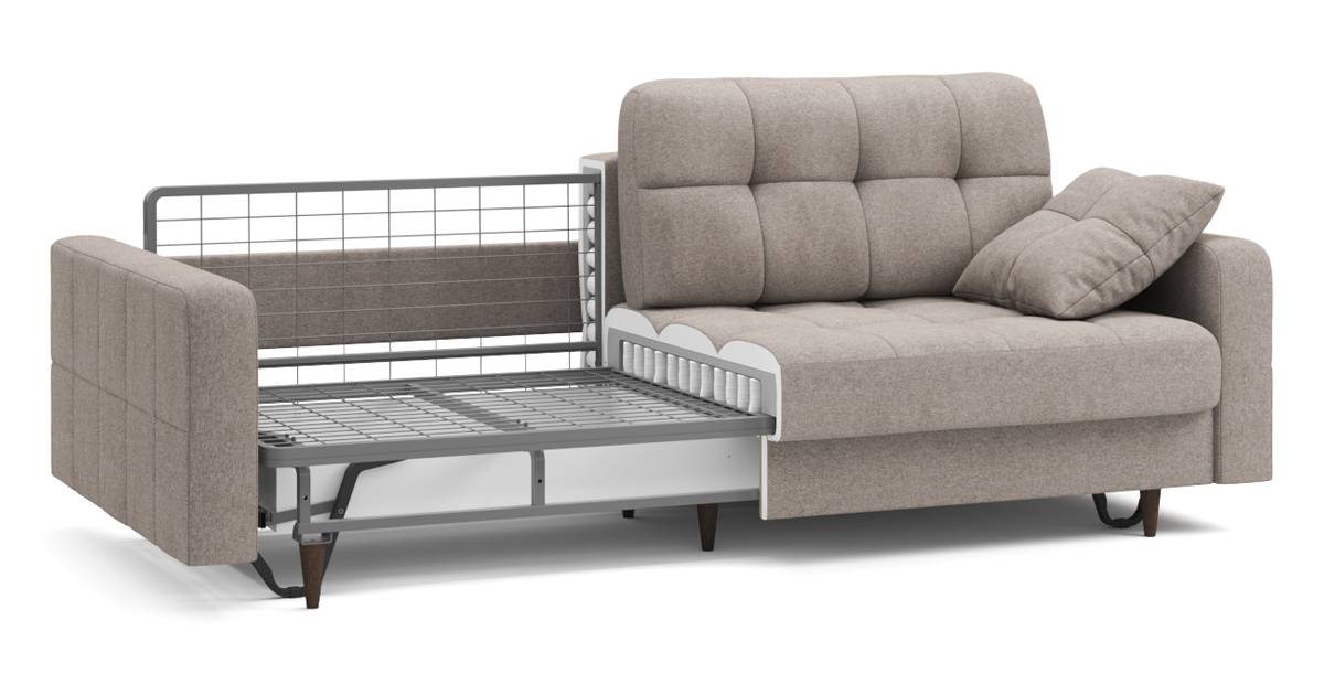 Диван Стокгольм – воплощение скандинавского стиля и привычной нам функциональности. Декоративные опоры визуально облегчают конструкцию и приподнимают ее над полом. При этом внутри дивана есть секция для хранения постельных принадлежностей. Модель оснащена механизмом трансформации, позволяющим разложить диван в просторное спальное место.