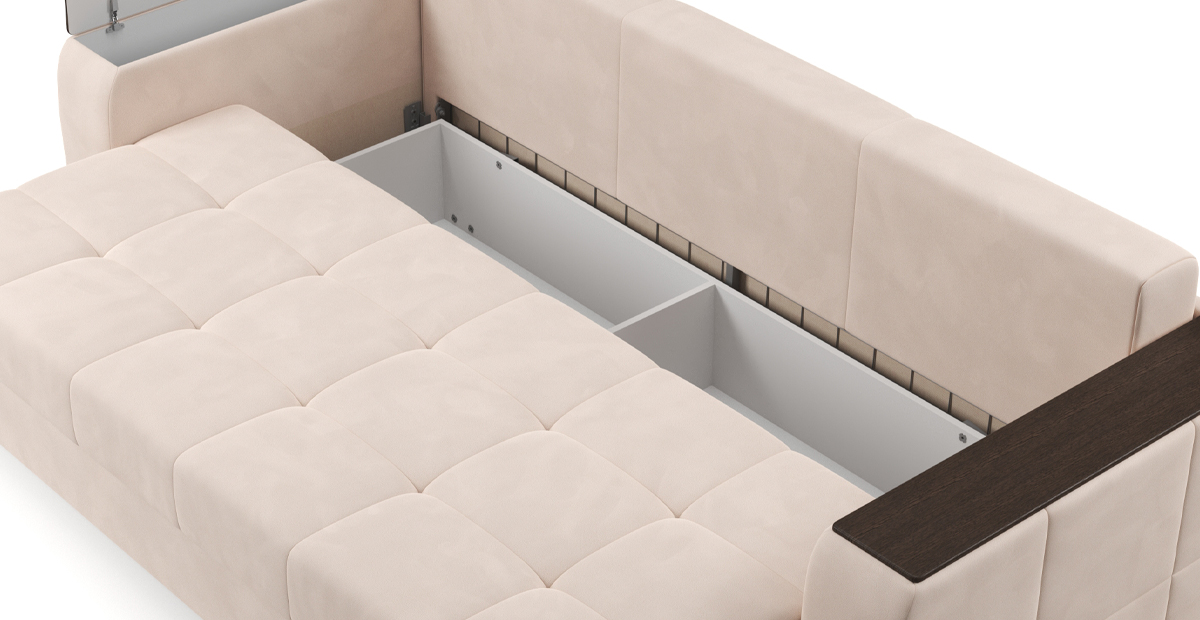 Основательный диван Портленд оценят все любители представительной и функциональной мебели. Особенность модели – скрытые секции хранения в массивных подлокотниках, позволяющие эффективно и рационально использовать пространство. Диван оборудован независимым пружинным блоком, что делает отдых на диване максимально комфортным.