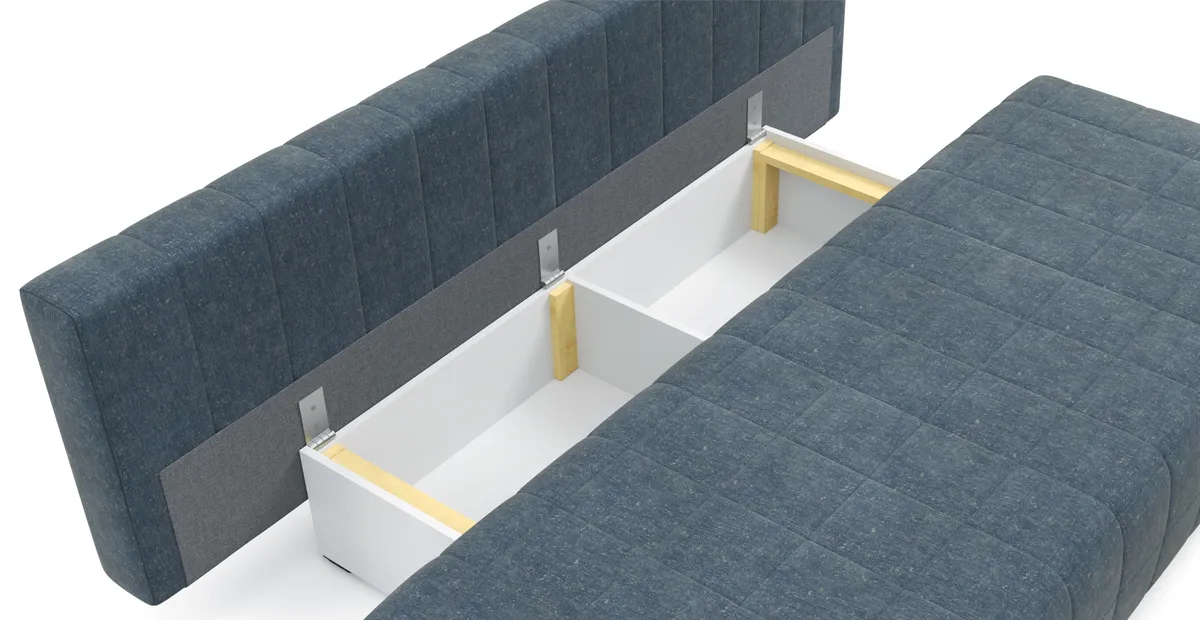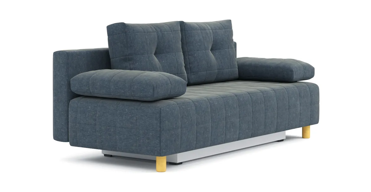 Компактный диван Порту для небольшого помещения – просто находка! Простые формы, приподнятые ножками над полом, скрывают в себе функционал полноценного дивана. Механизм трансформации легко превращает его в удобную кровать для регулярного сна. Ящики для хранения идеально подходят для приспинных подушек и постельных принадлежностей. Добавьте к Порту декоративных подушек – и ваш интерьер заиграет новыми красками.
