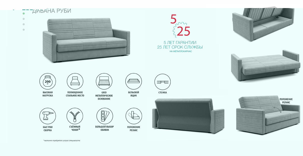 Компактный, эргономичный, удобный диван Руби NEXT станет настоящим любимцем в доме. Три положения спинки – «комфорт», «релакс» и «кровать» – превращают его в незаменимое место для отдыха. Таким невероятно удобным диван стал за счёт особого анатомически выверенного угла наклона сидения.