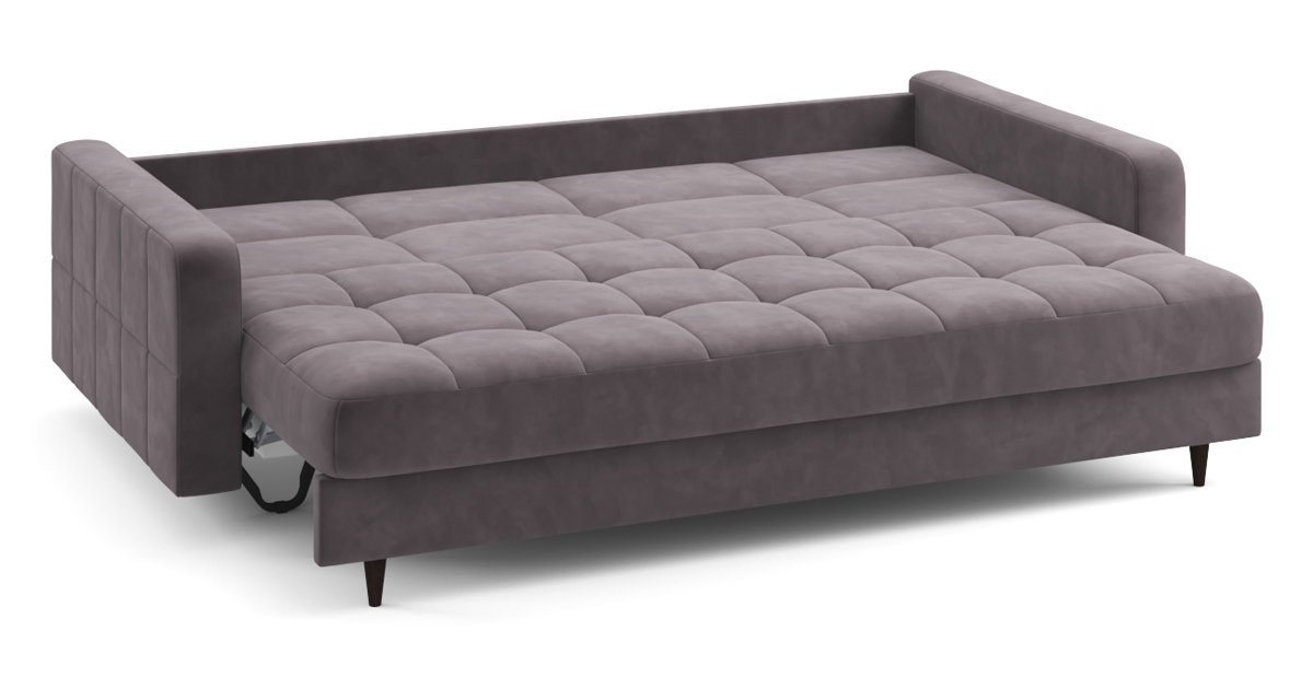 Диван Стокгольм – воплощение скандинавского стиля и привычной нам функциональности. Декоративные опоры визуально облегчают конструкцию и приподнимают ее над полом. При этом внутри дивана есть секция для хранения постельных принадлежностей. Модель оснащена механизмом трансформации, позволяющим разложить диван в просторное спальное место.