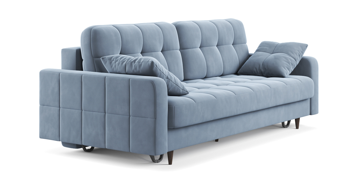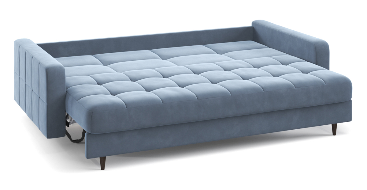 Диван Стокгольм – воплощение скандинавского стиля и привычной нам функциональности. Декоративные опоры визуально облегчают конструкцию и приподнимают ее над полом. При этом внутри дивана есть секция для хранения постельных принадлежностей. Модель оснащена механизмом трансформации, позволяющим разложить диван в просторное спальное место.