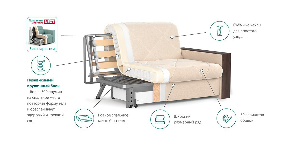 Диван Токио NEXT отражает стремление японцев к простоте и практичности. Это прекрасный вариант для тех, кто использует диван как кровать для повседневного сна. Благодаря механизму Аккордеон при раскладывании образуется удобное спальное место без стыков, а наличие фальш-спинки убережет покрытие стен от царапин и потертостей. Чехол дивана Токио наполнен мягким холлконом и простеган, чтобы в процессе использования обивка не сминалась и не растягивалась. В случае загрязнения чехол можно снять для чистки или замены.
