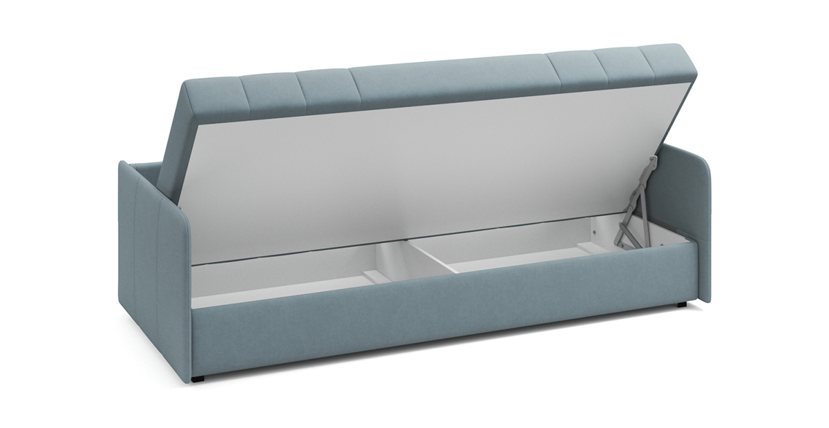 Благодаря узким подлокотникам диван Томас очень компактный, что позволяет его разместить даже в ограниченном пространстве. Комфортный ежедневный сон обеспечивает ортопедический матрас дивана Томас с независимым пружинным блоком Smartika. Во вместительном бельевом ящике под сидением можно хранить спальные принадлежности.